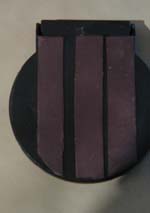 The CD player case is almost completely unmodified—it provided a perfect fit for the FT-817. A couple of staples through the CD case carry strap forms a tight loop suitable for carrying either the rubber duck antenna or a BNC-UHF angle adapter (as shown). Wrap tape over the staples to prevent catching the sharp staple ends on things.